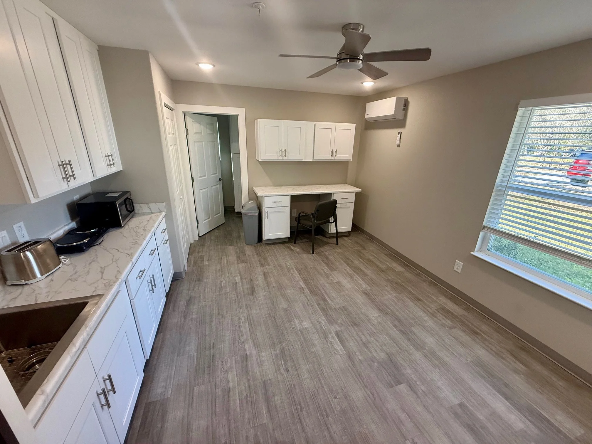Each apartment is designed to reflect real-world independent living. Graduates sign their own lease agreements, each unit is individually metered, and residents are responsible for paying their own utilities—allowing them to build financial responsibility and establish a legitimate rental history—while still receiving support from Hope’s Path staff as needed.